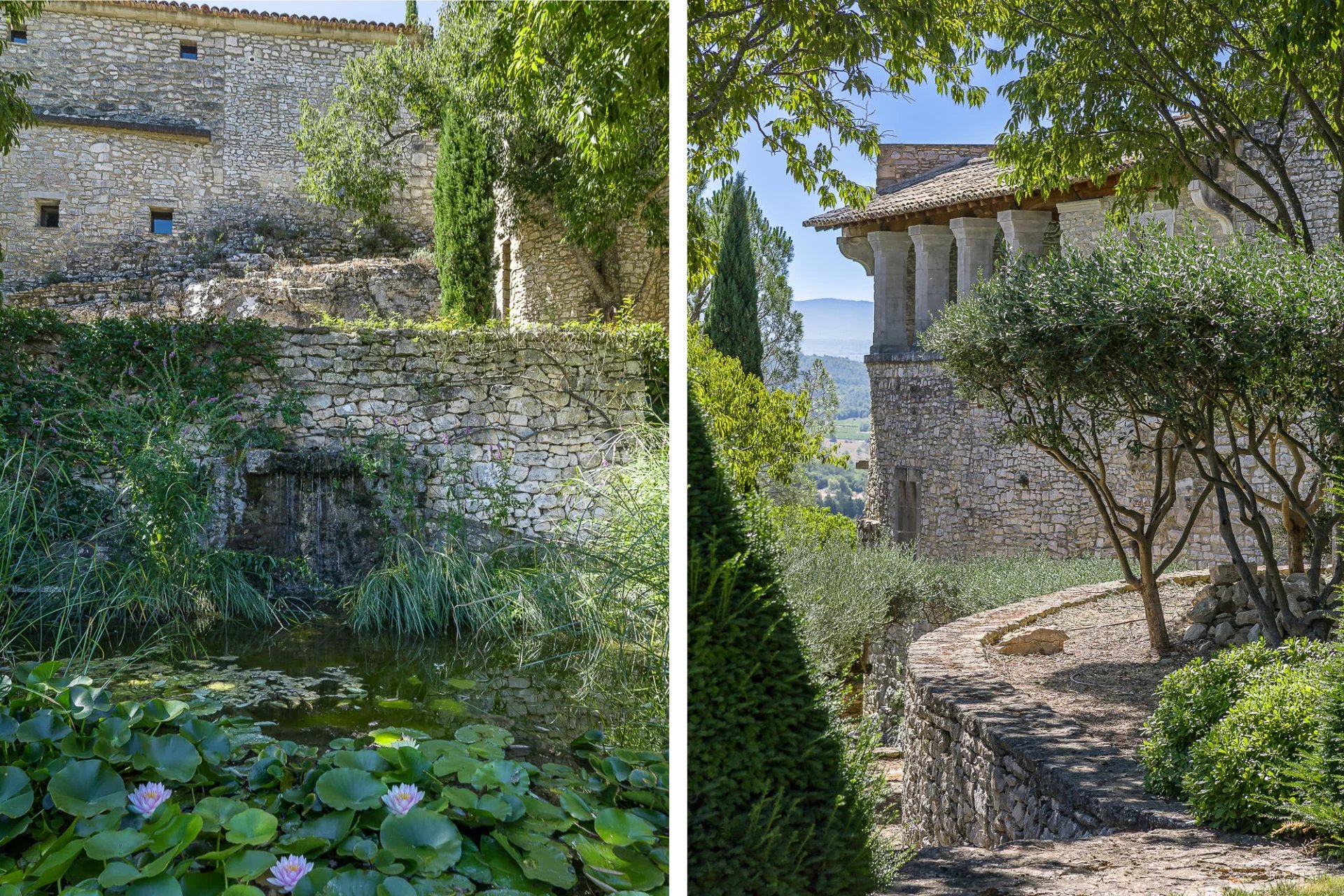 Le terrain de près de 5000 m², situé au cœur du village, est légèrement en pente. Il est entièrement clôturé de murs en pierre et aménagé en restanques. L'aménagement paysager est soigné, avec de nombreuses essences, des dalles engazonnées et un élégant bassin avec fontaine.