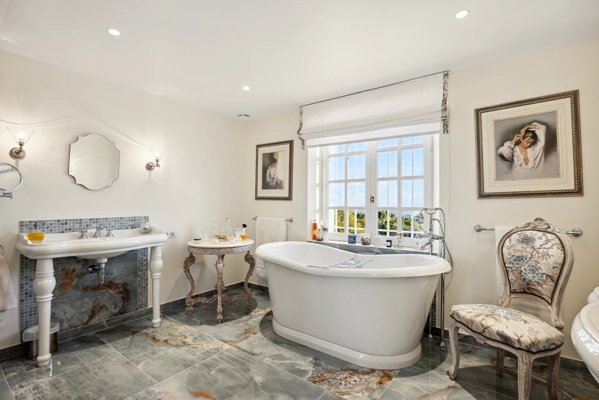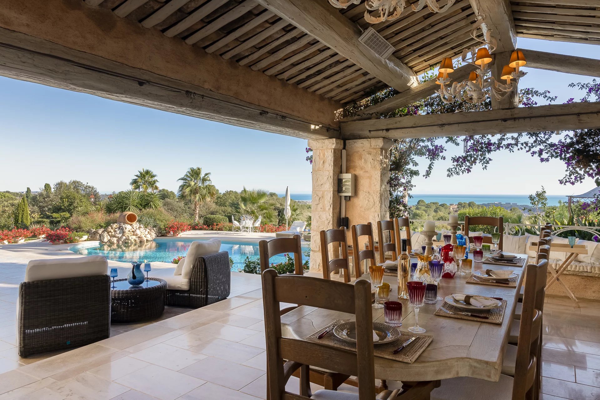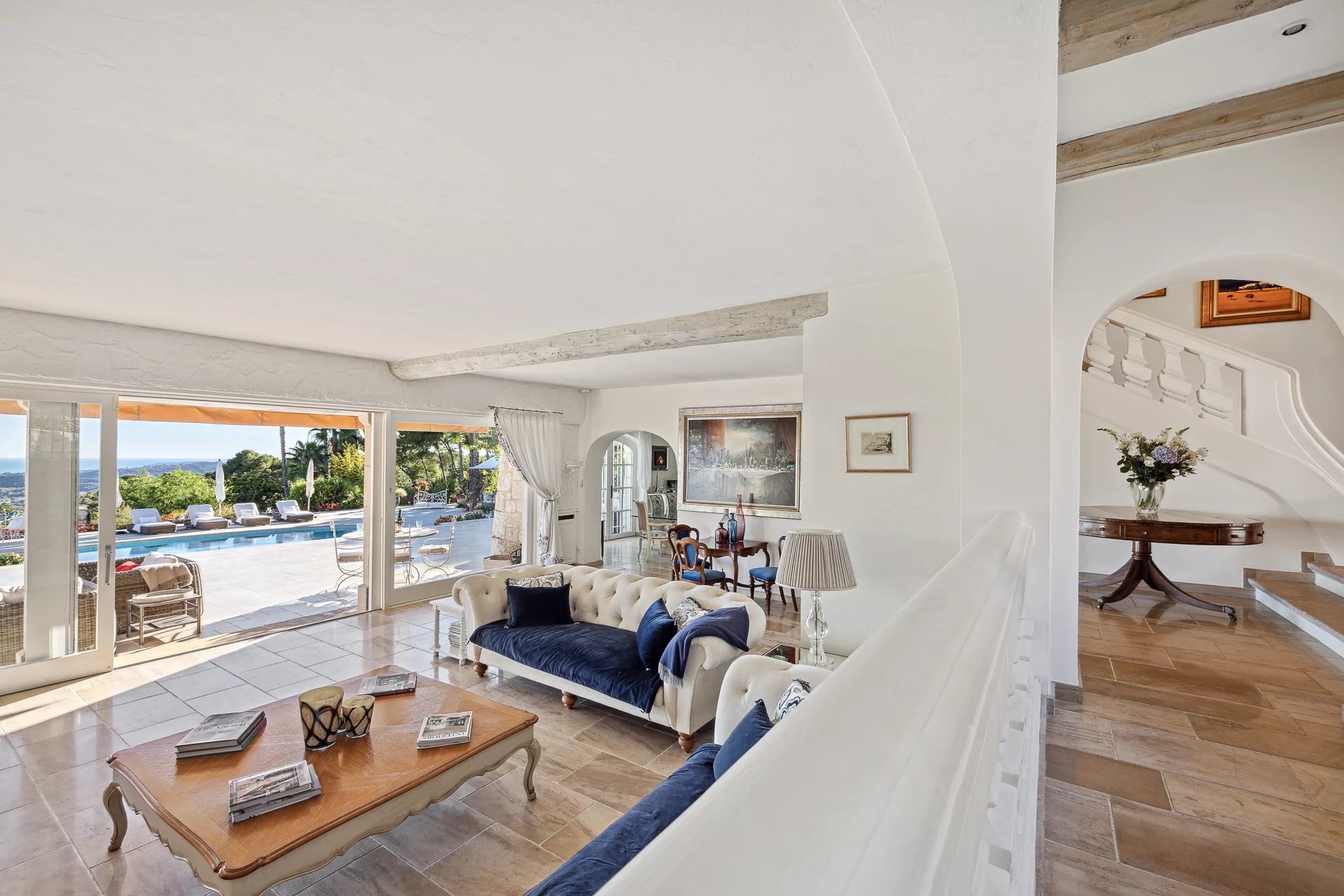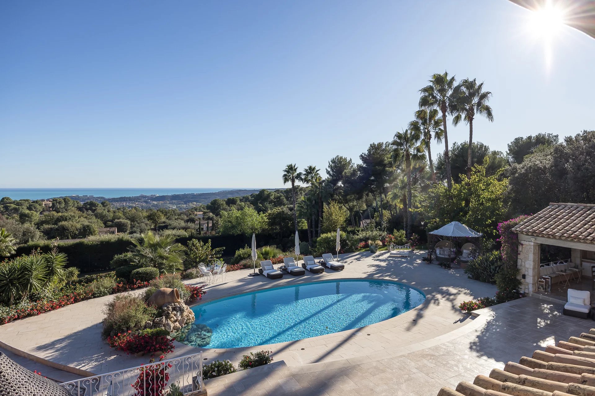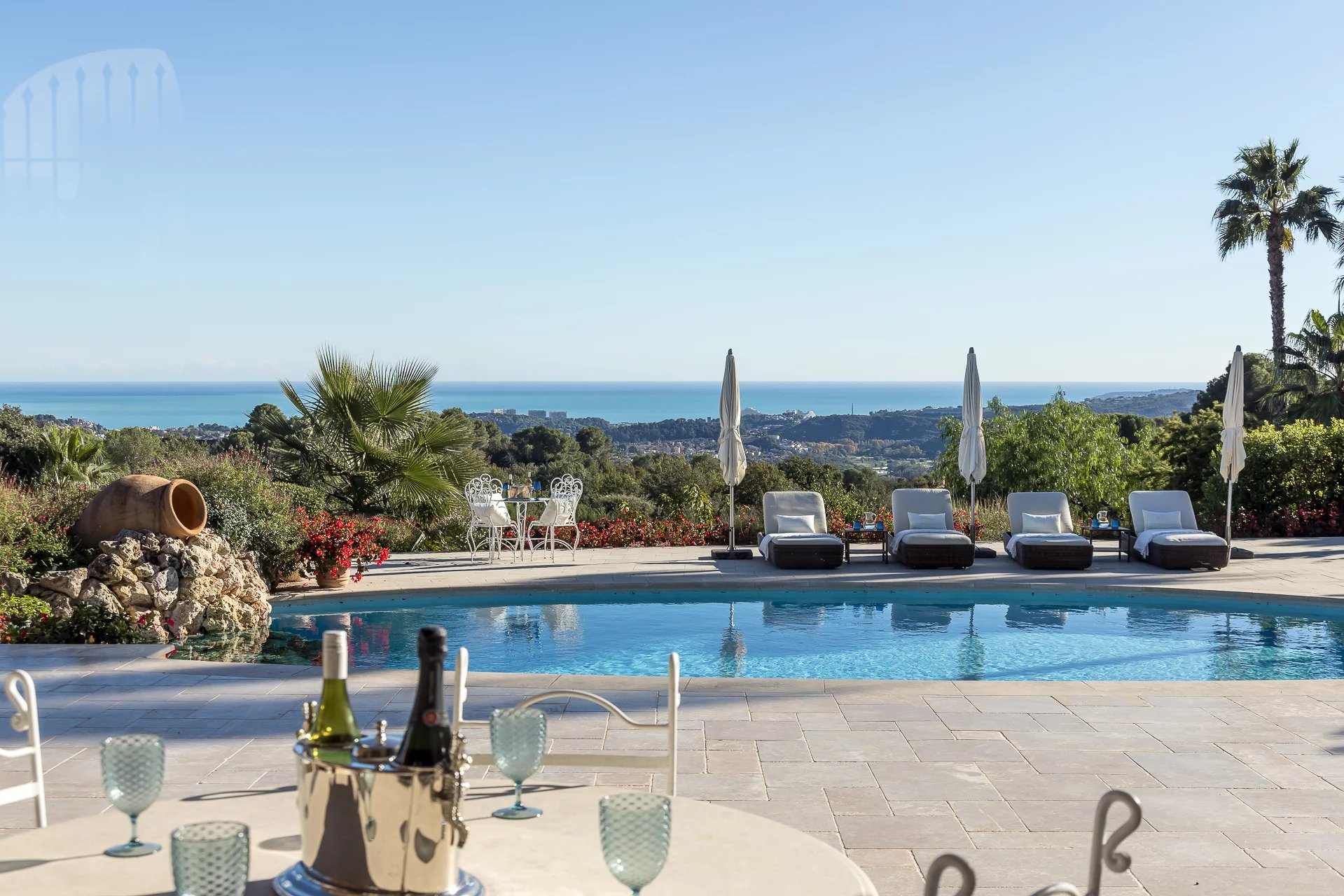 Perchée sur les collines entre Nice et Cannes, cette luxueuse propriété est située à proximité immédiate du prestigieux domaine fermé Les Hauts de Saint-Paul. Entourée de pelouses vallonnées, elle bénéficie sans doute des plus belles vues mer de toute la région. Cette résidence de 11 chambres a été récemment rénovée et répond aux plus hauts standards. Organisée sur trois niveaux, les points forts comprennent un généreux salon avec salle à manger attenante ouvrant sur une immense terrasse avec sa cuisine et salle à manger extérieure, le tout magnifiquement disposé autour d'une élégante piscine. Deux maisons et un appartement d'amis, un court de tennis parfaitement entretenu complètent ce cadre somptueux.
