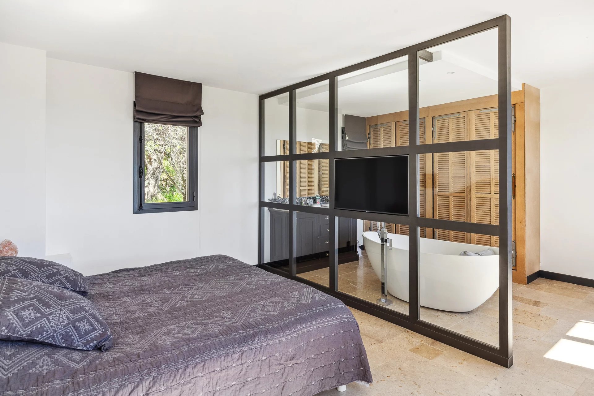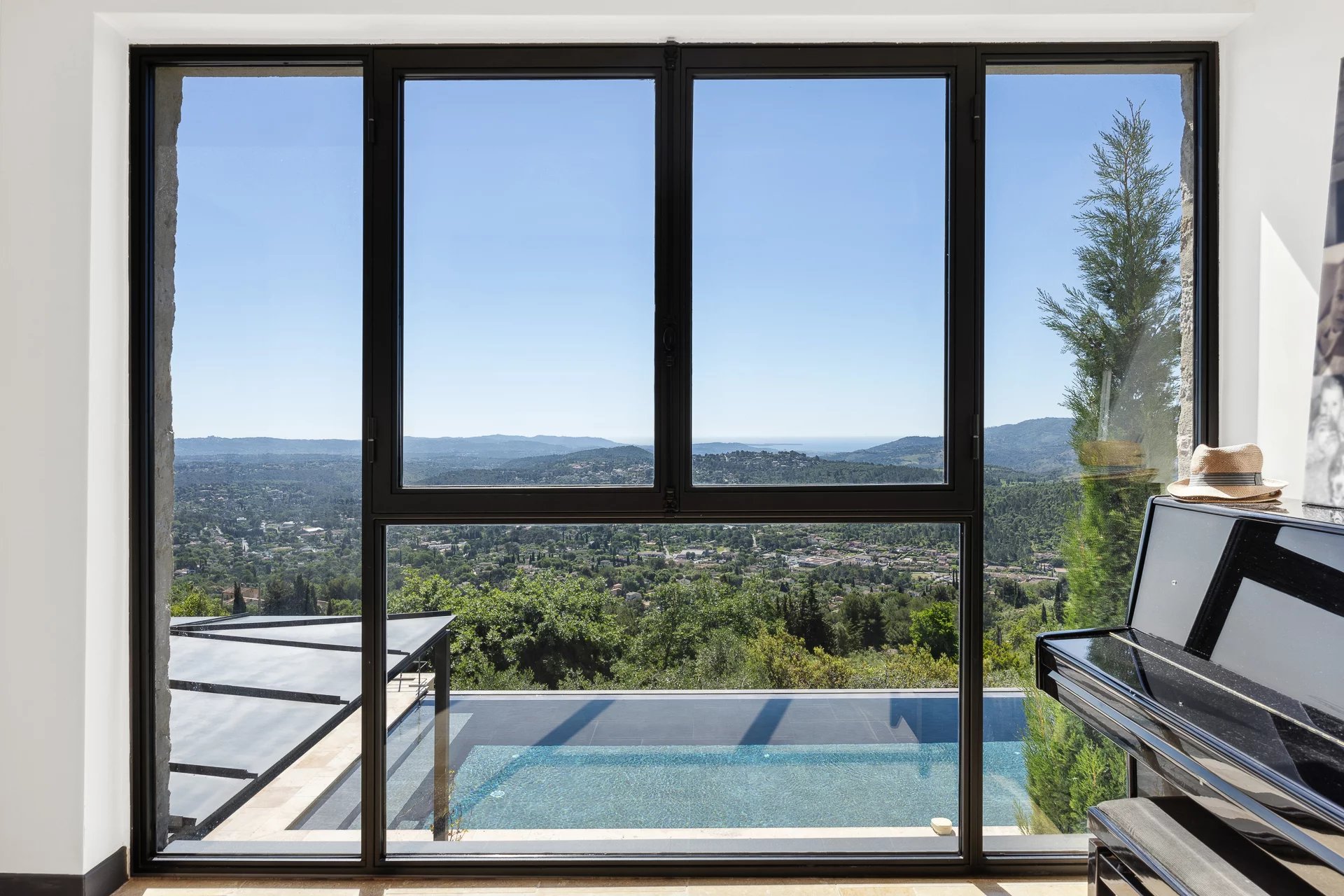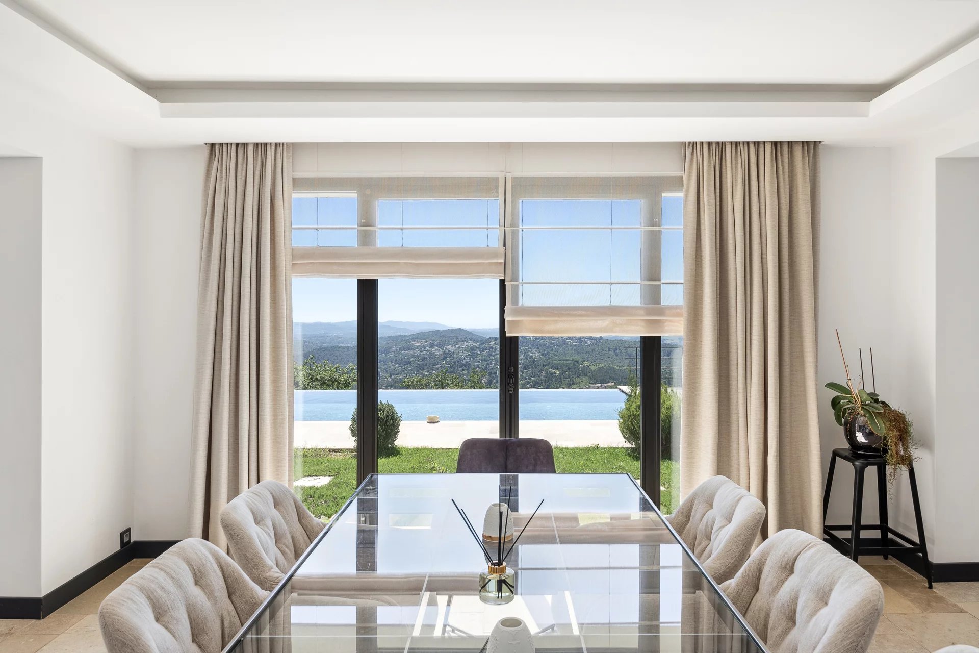 Le terrain, d'une superficie de 3806 m², est magnifiquement arboré d'oliviers méditerranéens, créant une atmosphère paisible et authentique. La piscine à débordement, véritable invitation à la détente, vous permet de profiter pleinement de l’environnement exceptionnel qui vous entoure.
