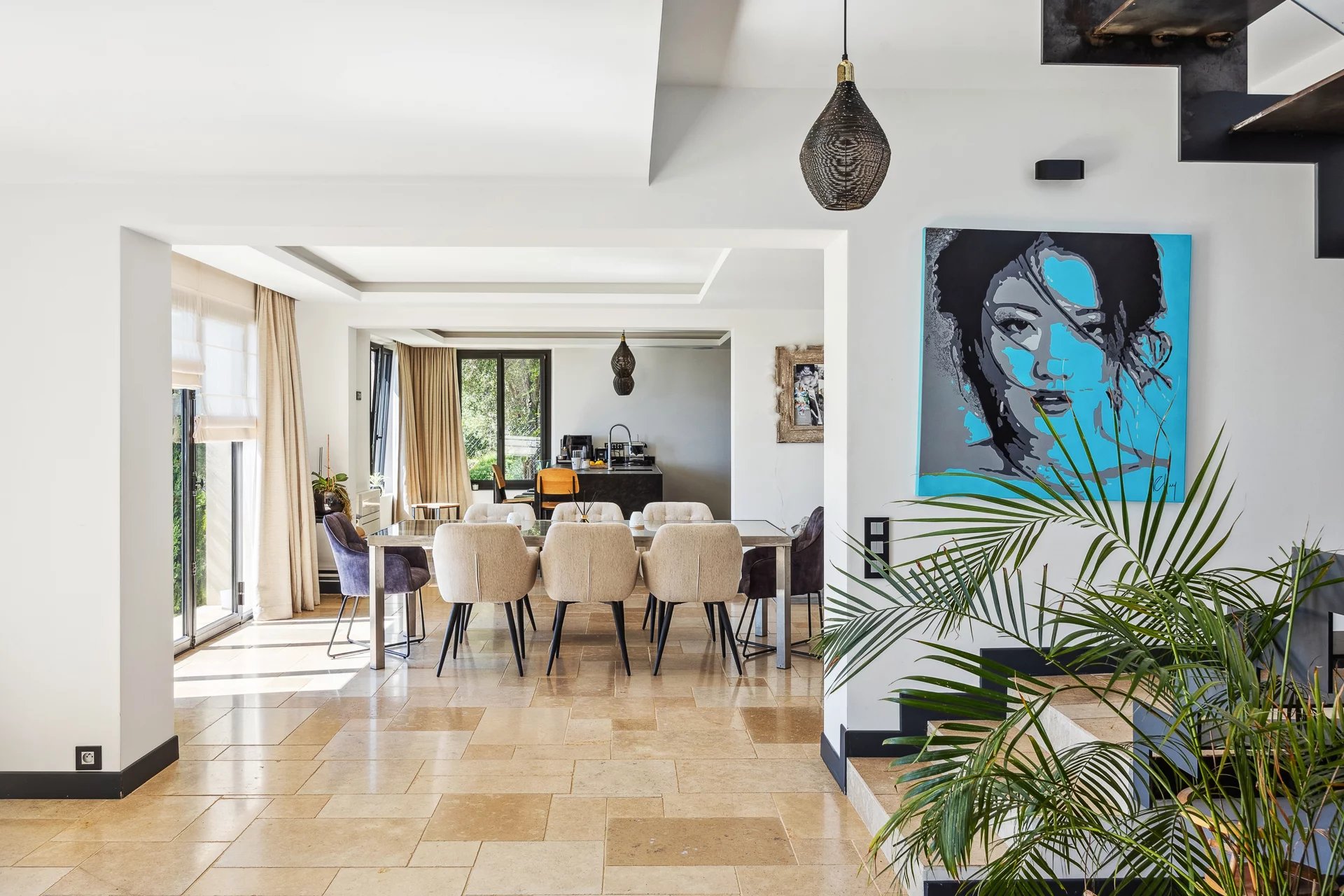 Découvrez cette villa d'exception, idéalement située en position dominante, offrant une vue panoramique imprenable sur la mer et les îles de Lérins. Récemment rénovée avec goût, cette propriété d'environ 230 m² vous invite à savourer un cadre de vie unique, conjuguant luxe, confort et tranquillité.