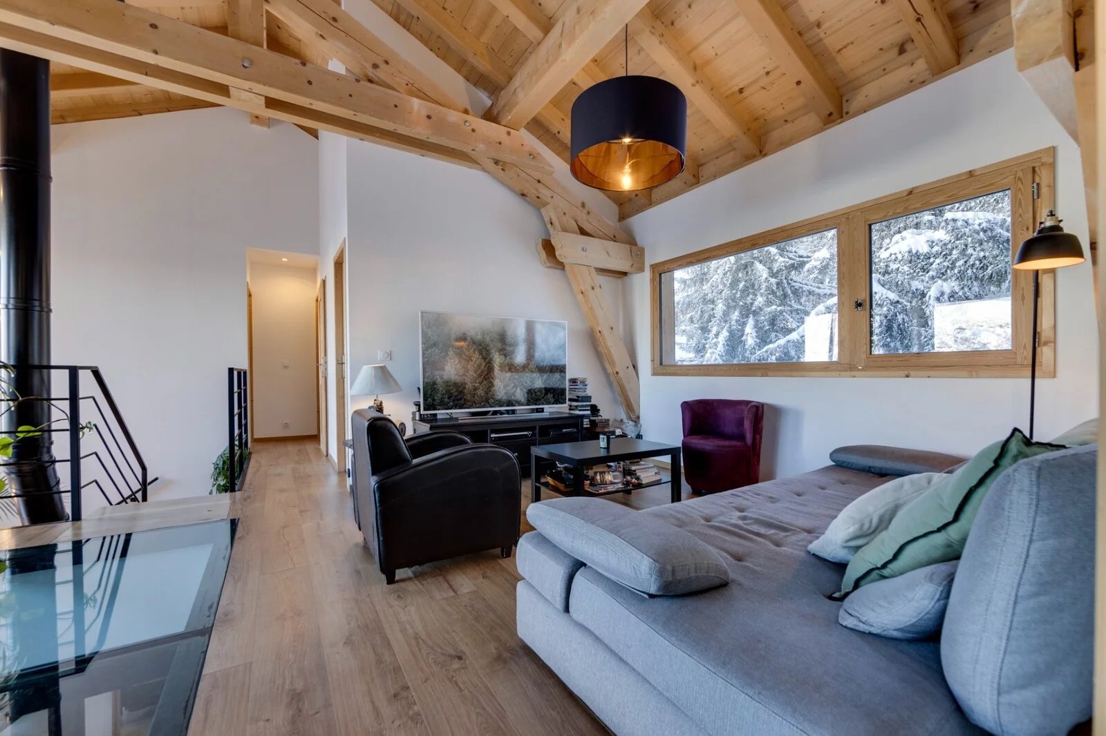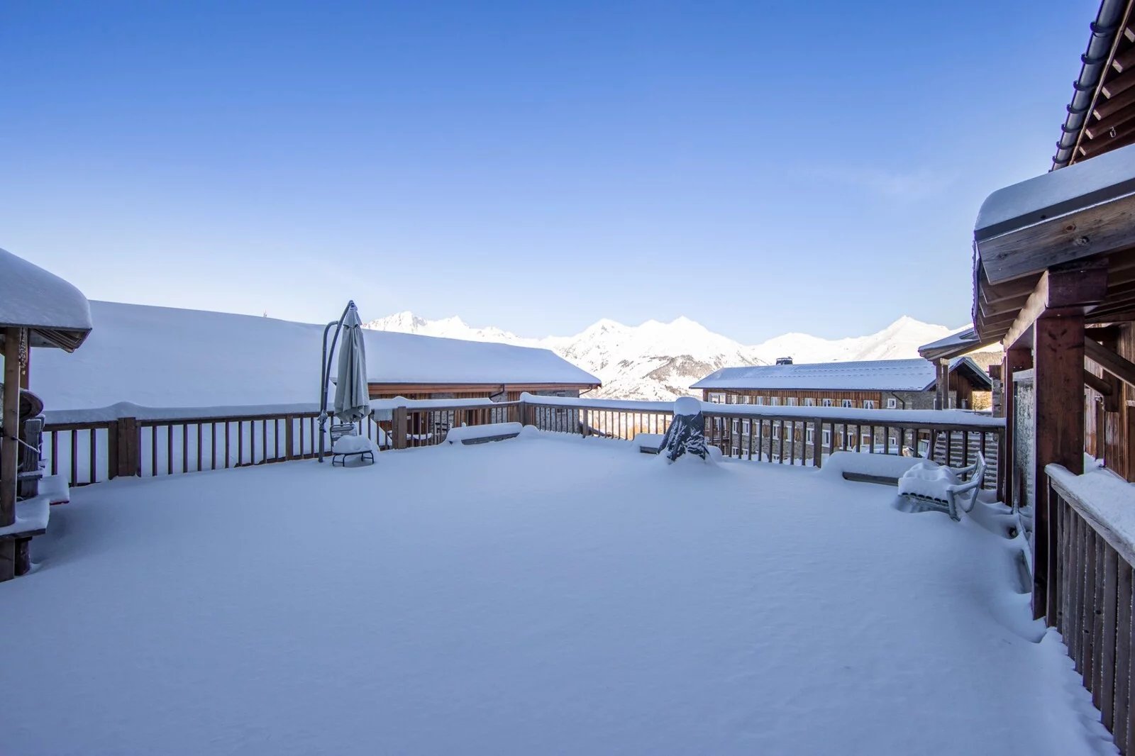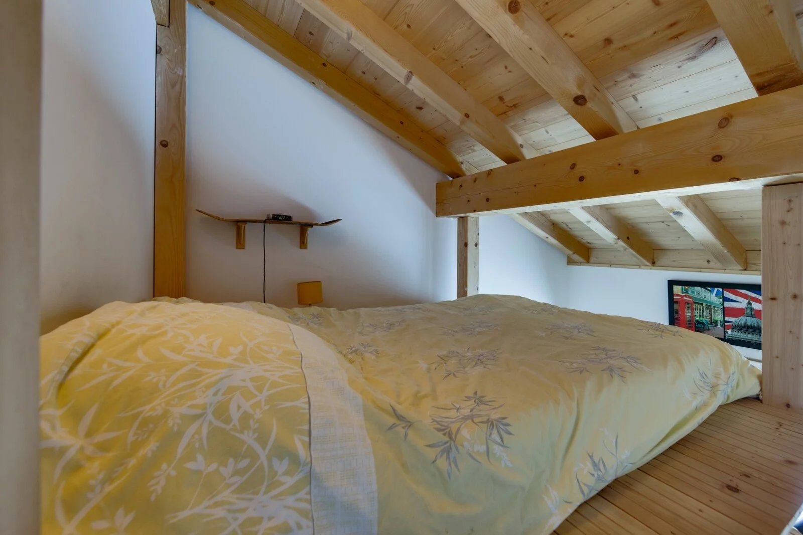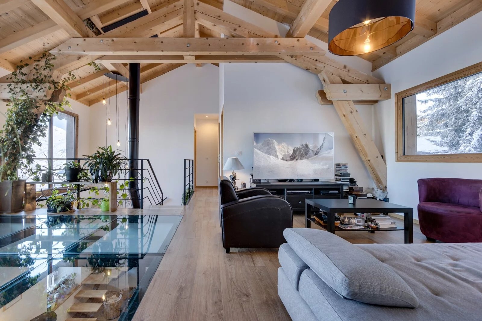 Le premier appartement bénéficie d'une grande pièce de vie avec cuisine ouverte, et est très lumineux grâce au plafond de verre, qui lui donne une touche contemporaine unique. Composé de 5 chambres et de trois salles de bains, répartis sur deux niveaux, il peut accueillir confortablement 12 personnes. Il bénéficie d'une grande terrasse de 70 m² avec une très jolie vue sur les montagnes (expo Sud-Ouest)