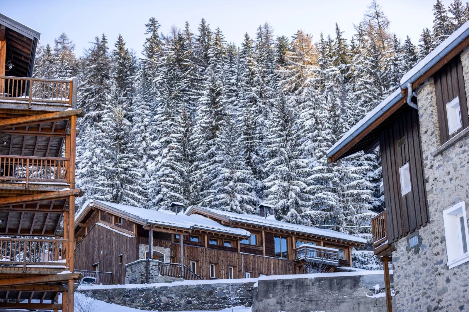 Situé dans le hameau de Courbaton, à l'abri de l'effervescence des Arcs, mais à moins de 800 mètres du centre station d'Arc 1600, ce grand chalet a été divisé en 2 appartements duplex.