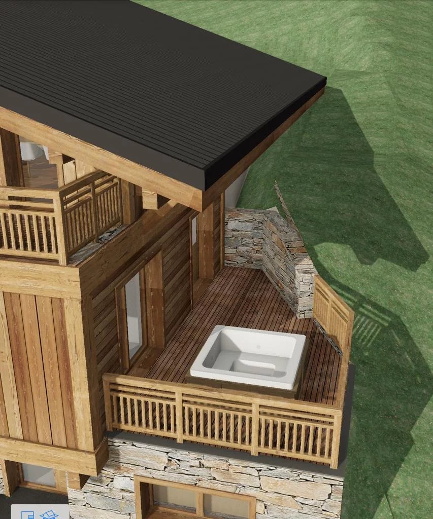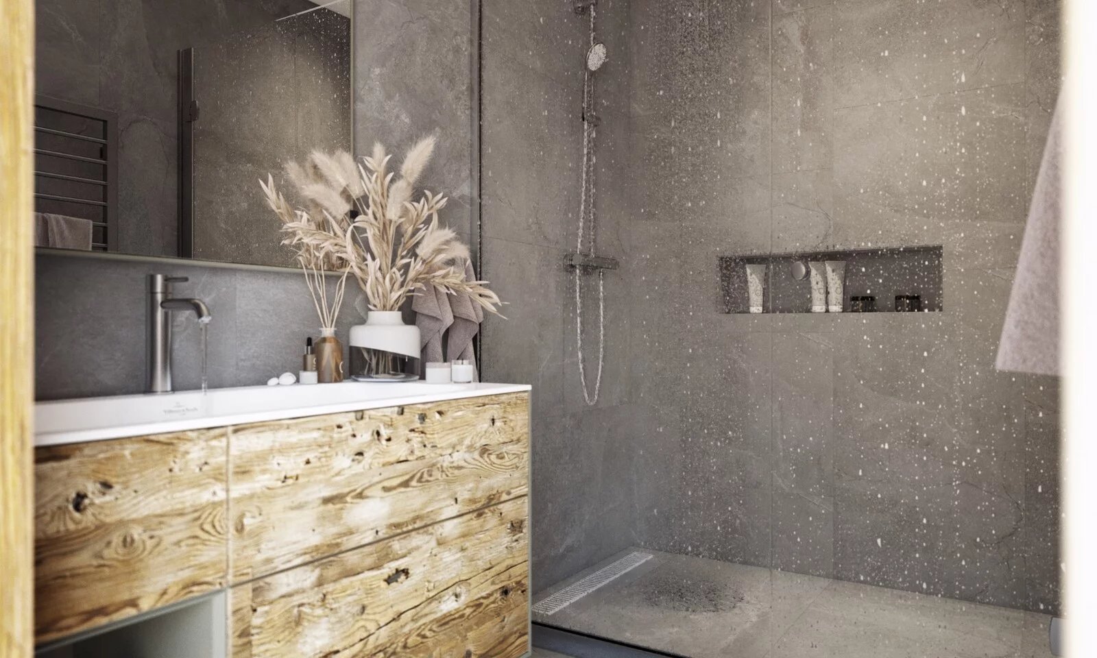 Ce chalet de 284 m² édifié sur 3 niveaux, se compose de 4 grandes chambres en suite avec dressing. L'une d'elle est une master chambre.