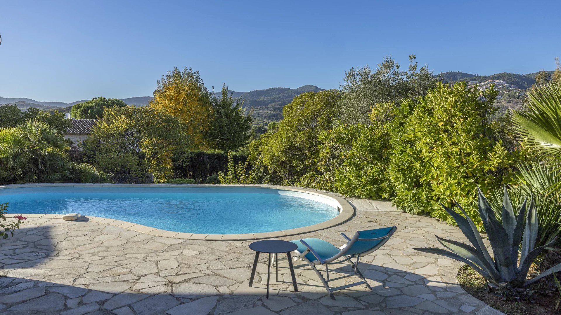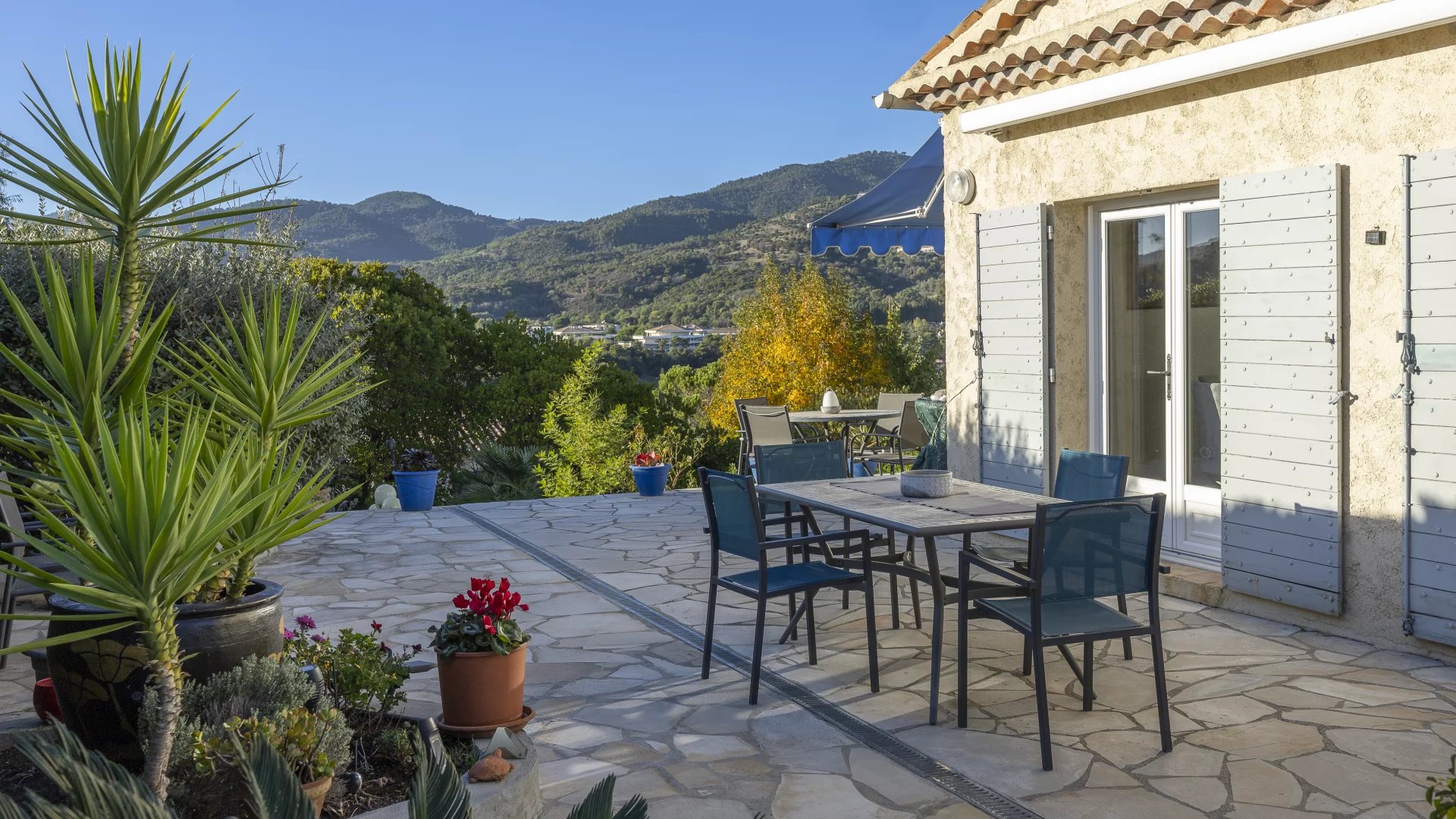 Dans un quartier prisé et calme de Mandelieu, en position dominante, cette élégante maison familiale rénovée offre une vue imprenable sur la montagne et le golf.