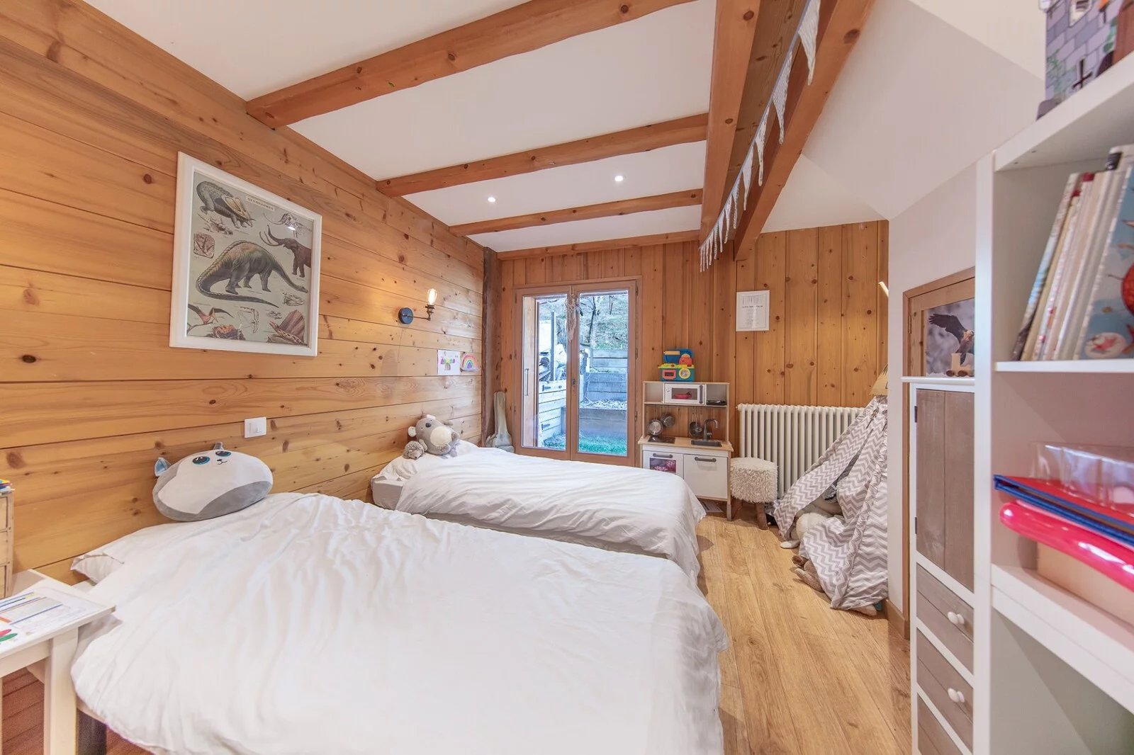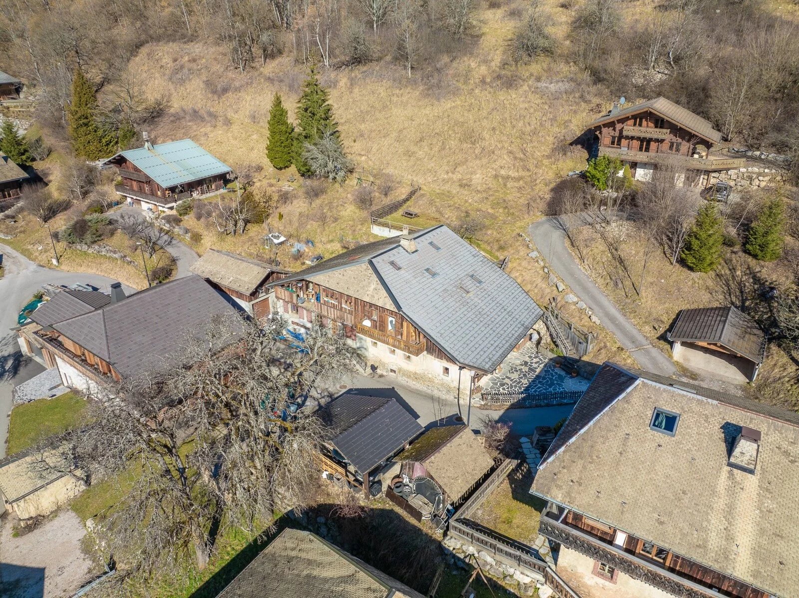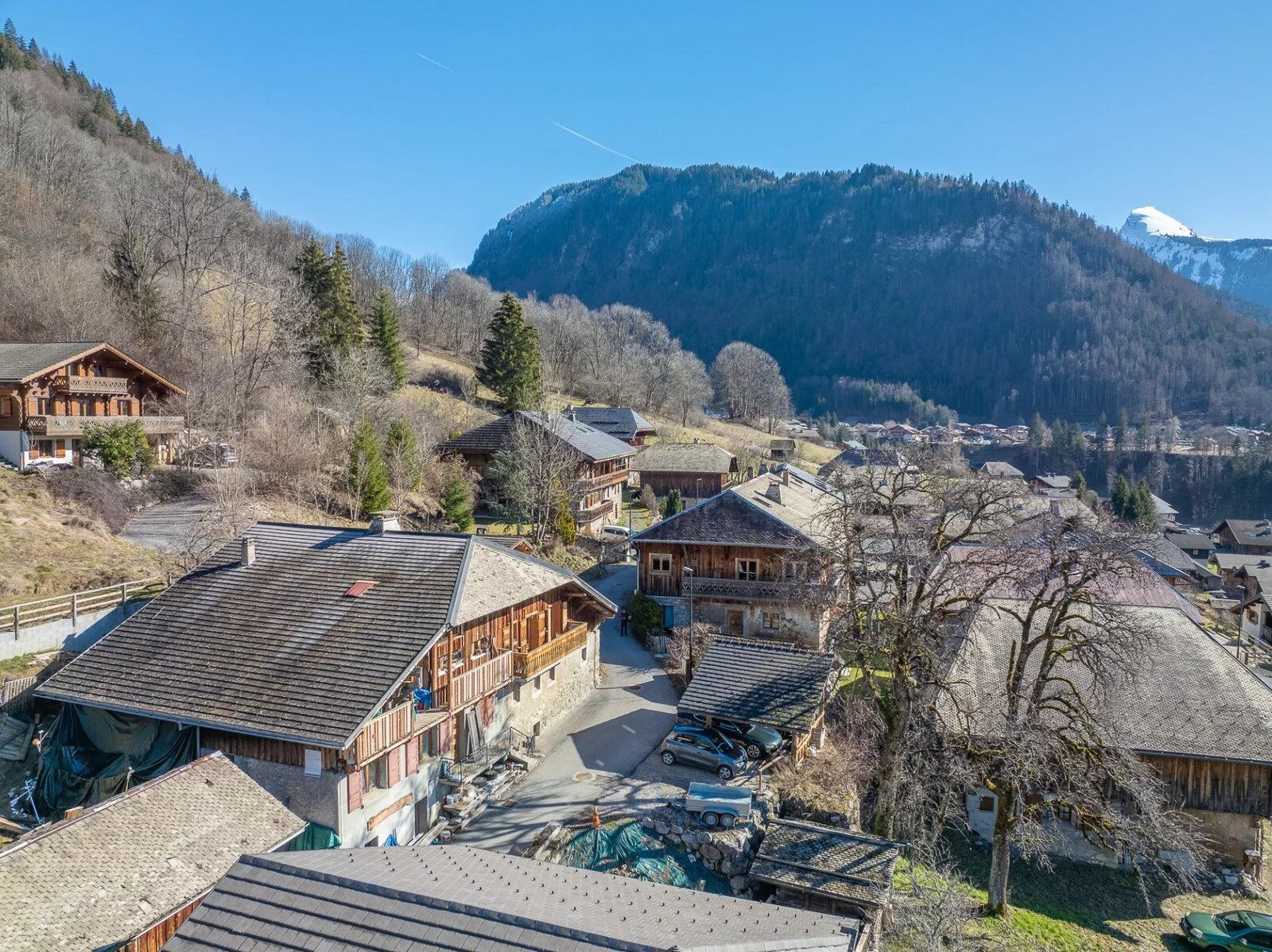 Le tout sur un terrain de 482 m² avec deux places de parking couvertes et un mazot (cabane traditionnelle de style mini-chalet).