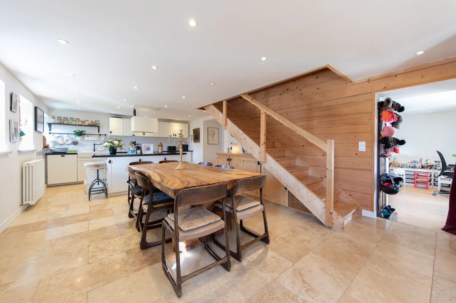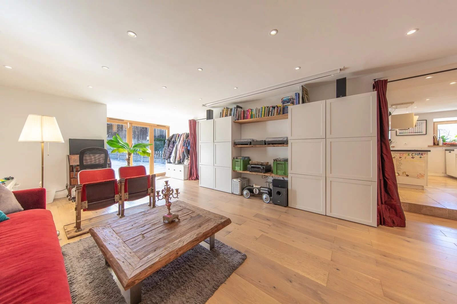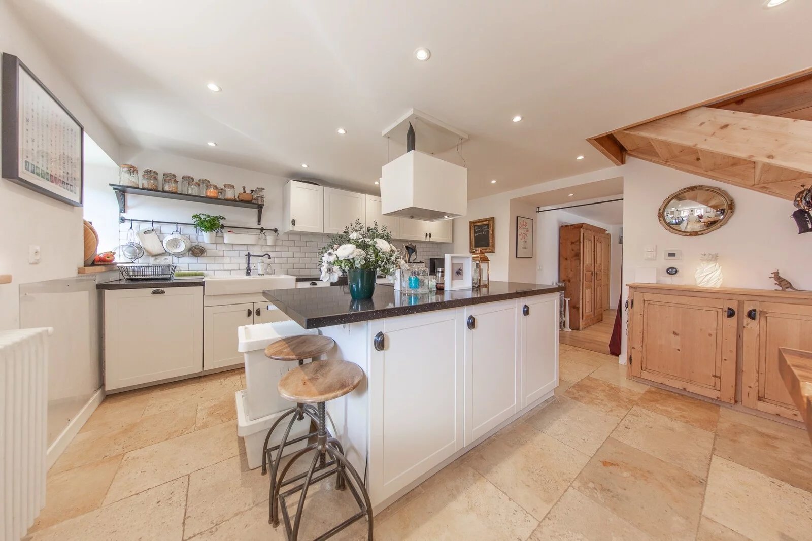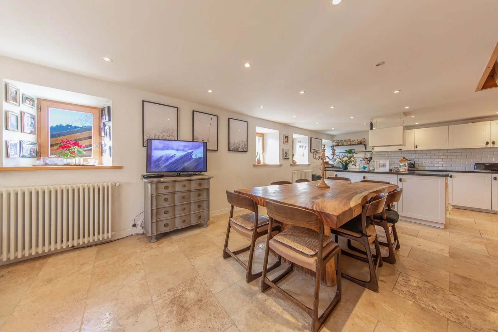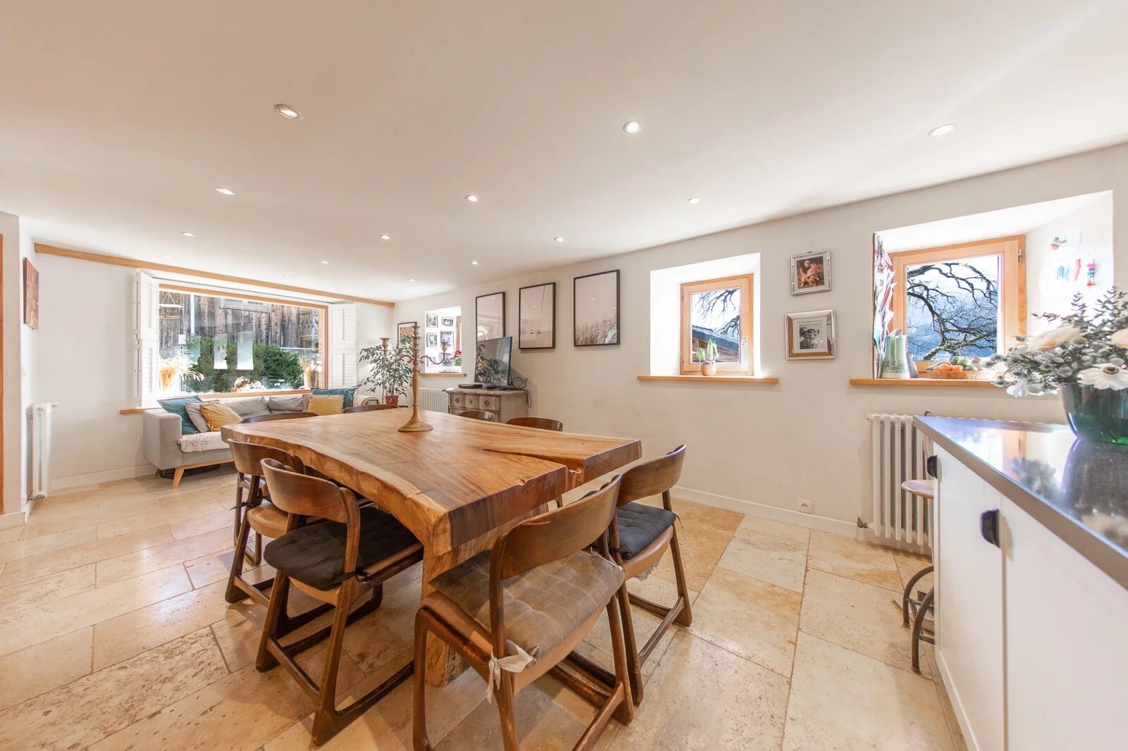 En savoir plusLe rez-de-chaussée est divisé entre une cuisine très agréable et spacieuse avec un coin repas et une banquette, et un grand salon avec des portes-fenêtres s'ouvrant sur une terrasse. Il y a également une buanderie et des toilettes séparées.
