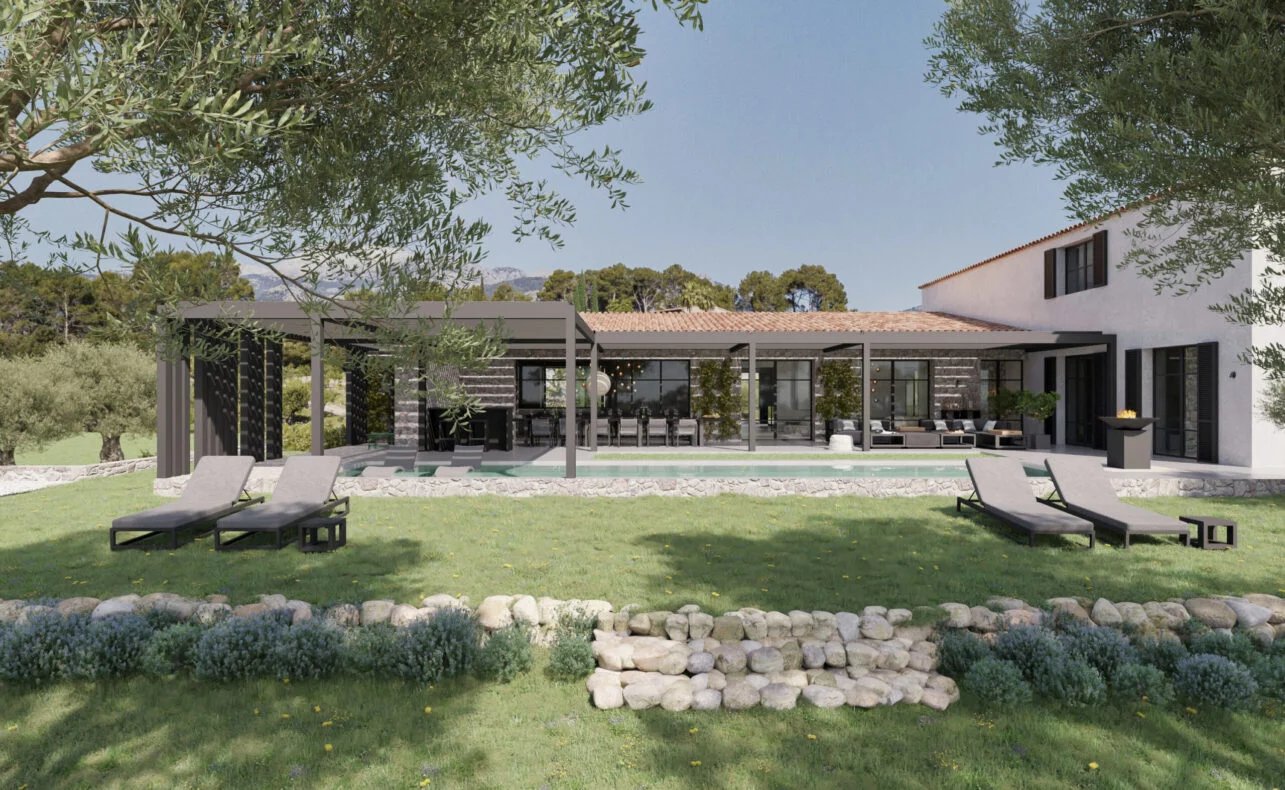Situé au pied des imposantes montagnes de la Tramuntana, ce domaine nouvellement construit représente une réinterprétation du luxe contemporain. Avec 21 000 m² de terrain et une surface construite de 680 m², cette propriété offre un niveau exceptionnel d'intimité, un environnement naturel inégalé et même la possibilité de créer son propre vignoble.