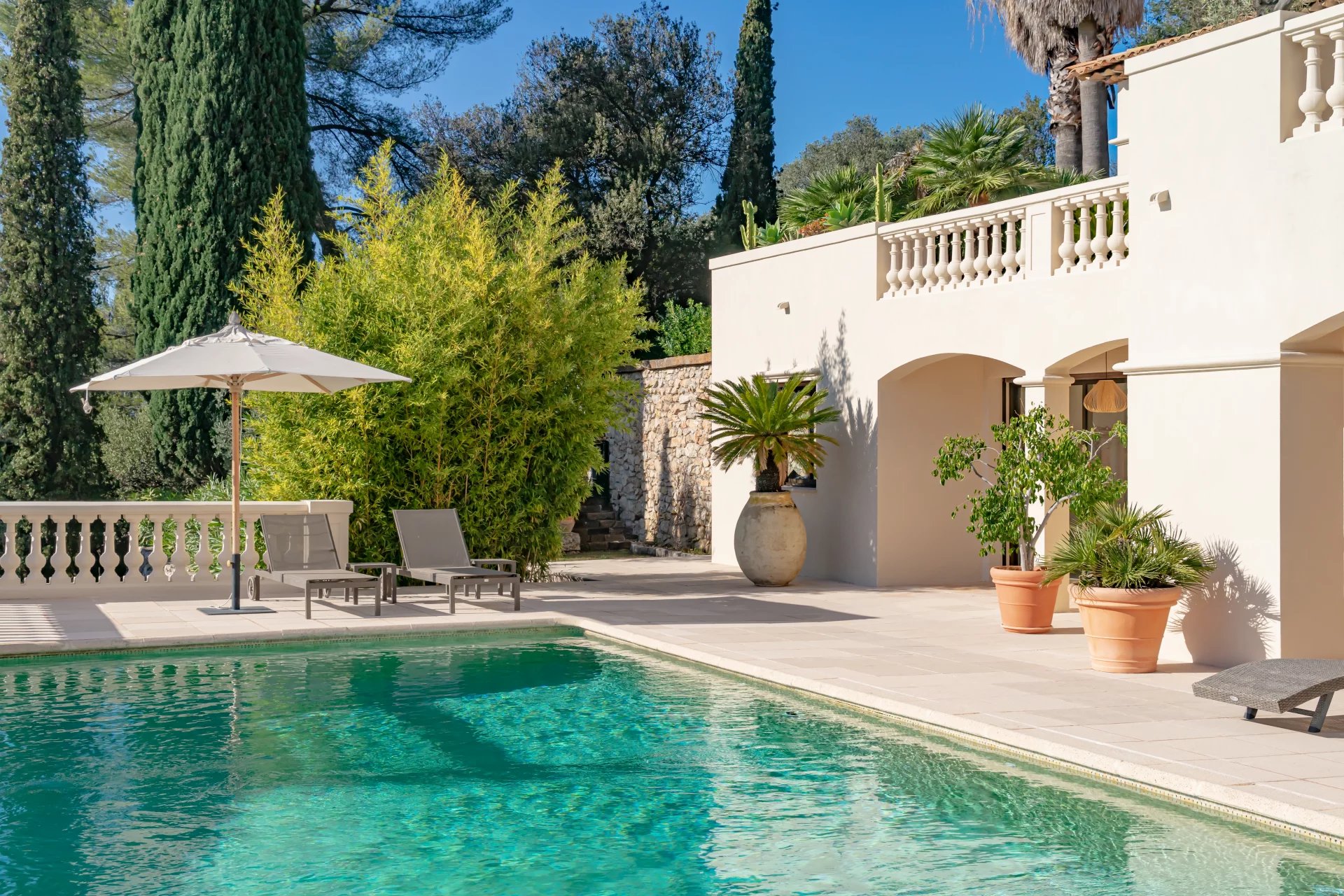 Édifiée sur un ravissant parc clos d’environ 4800 m², composé de larges restanques de pierres sèches, vous permettant d’y vivre en toute sérénité et au repos. Cette propriété bénéficie d’une très belle piscine à débordement ainsi que d’un généreux espace de réception situé tout autour, assorti d’une cuisine d’été avec BBQ.