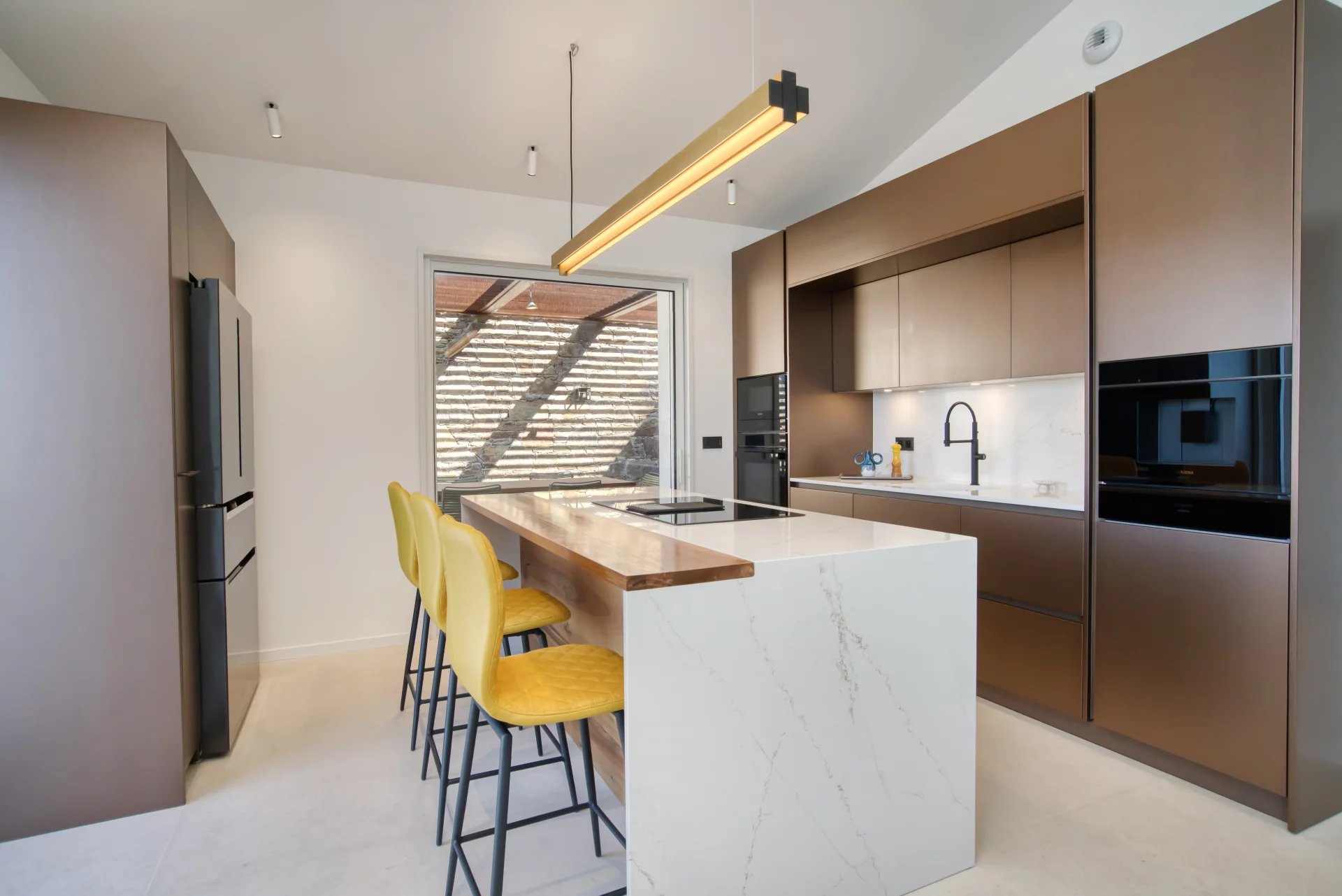 Il comprend un très beau séjour cathédrale spectaculaire et une cuisine plein Sud, une suite master avec accès à la terrasse et 2 chambres avec salles de bains. Une deuxième terrasse accessible directement depuis la cuisine permet de prolonger l'été en offrant un espace charmant ombragé d'une pergola bois avec murs en pierre naturelle.