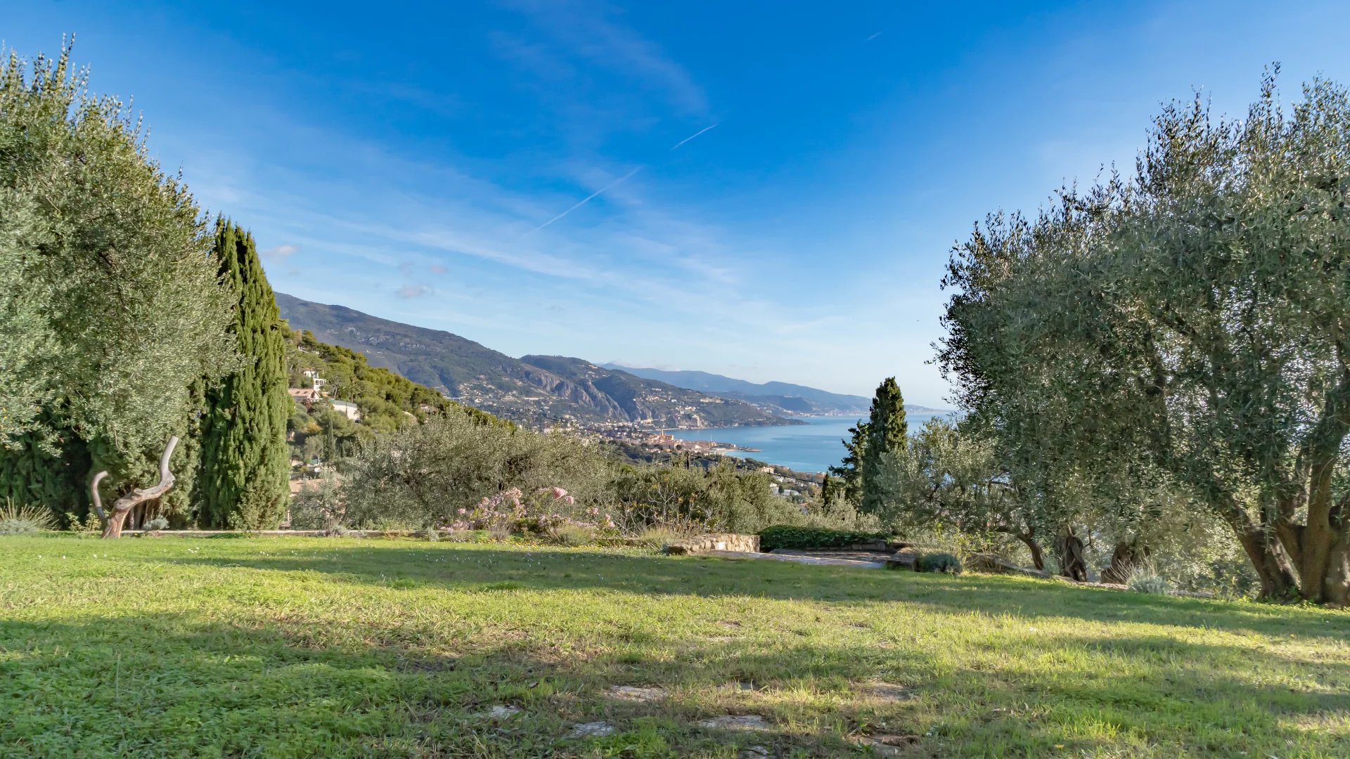 Cette propriété au calme absolue offre une vue imprenable sur la baie de Menton, la côte italienne, le Cap Martin et Monaco.