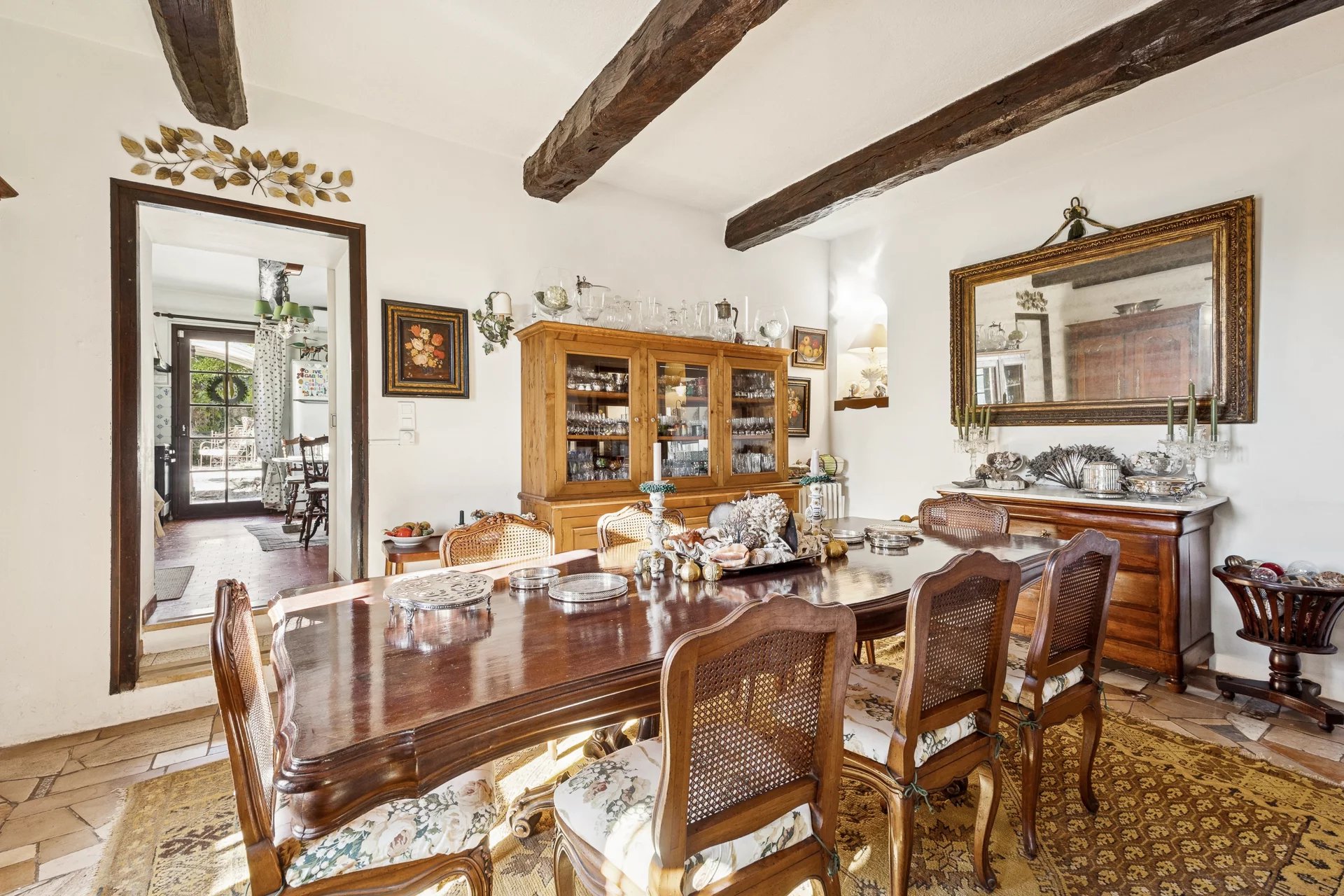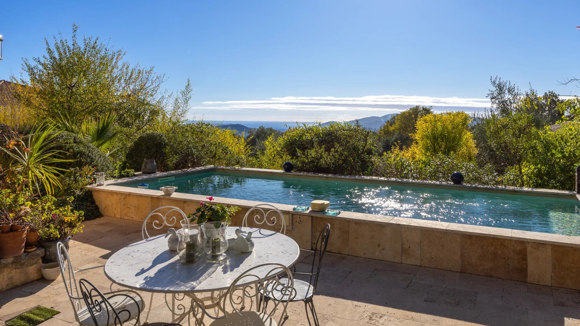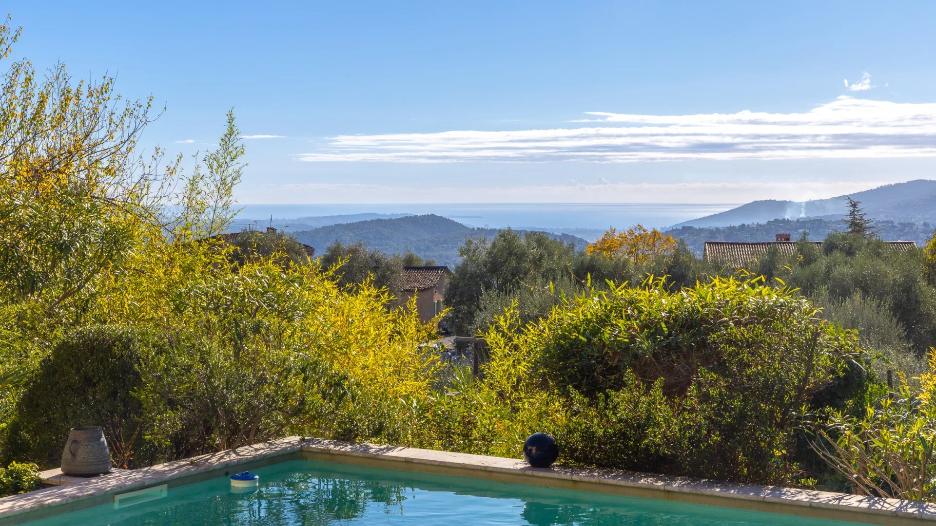 À proximité immédiate du village, ce mas du XVIIIe siècle, restauré en 2013, conjugue le charme de l’ancien et le confort d’une rénovation soignée. Ses extérieurs arborés abritent une piscine en travertin d’où l’on aperçoit la mer au loin.