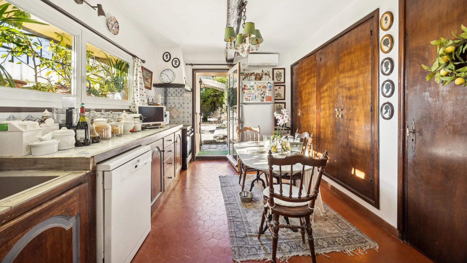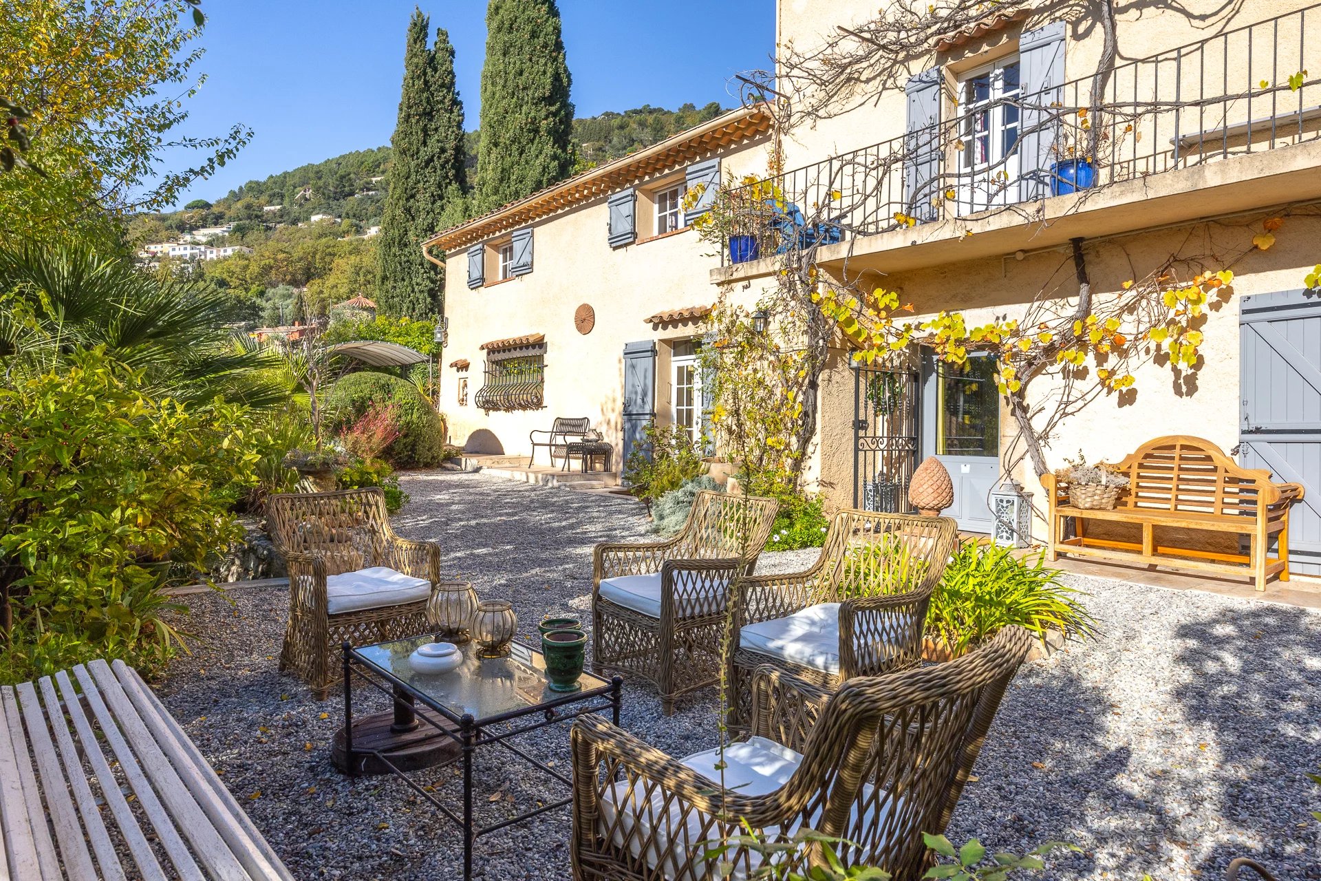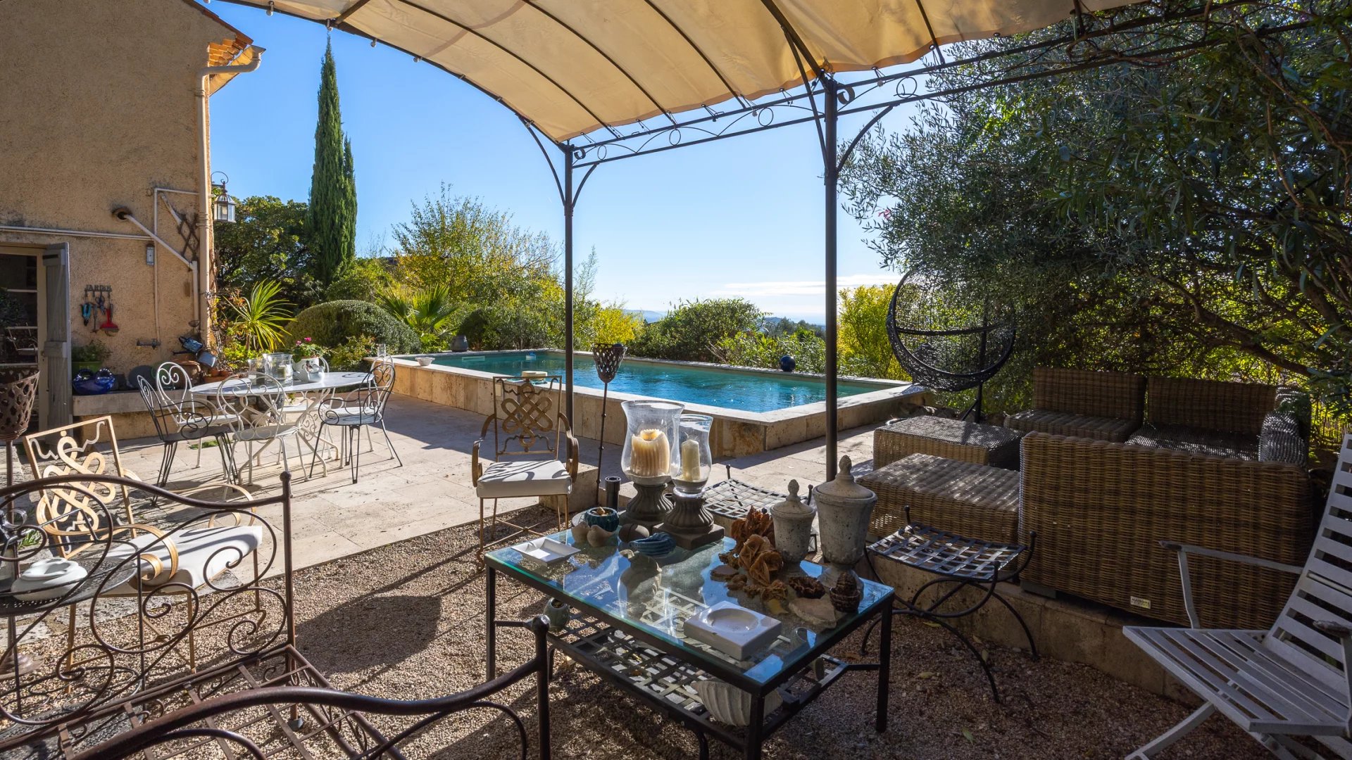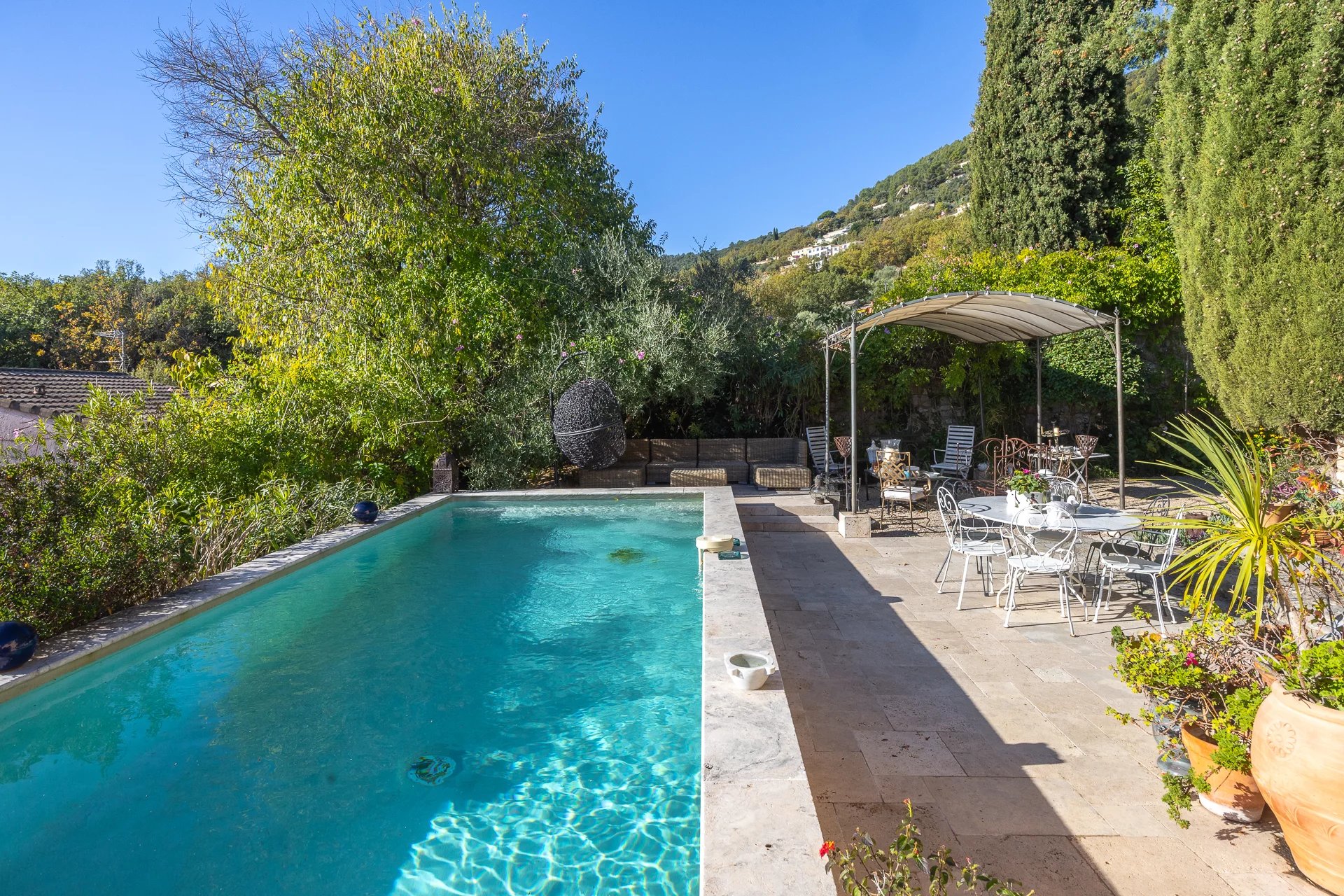 À proximité immédiate du village, ce mas du XVIIIe siècle, restauré en 2013, conjugue le charme de l’ancien et le confort d’une rénovation soignée. Ses extérieurs arborés abritent une piscine en travertin d’où l’on aperçoit la mer au loin.