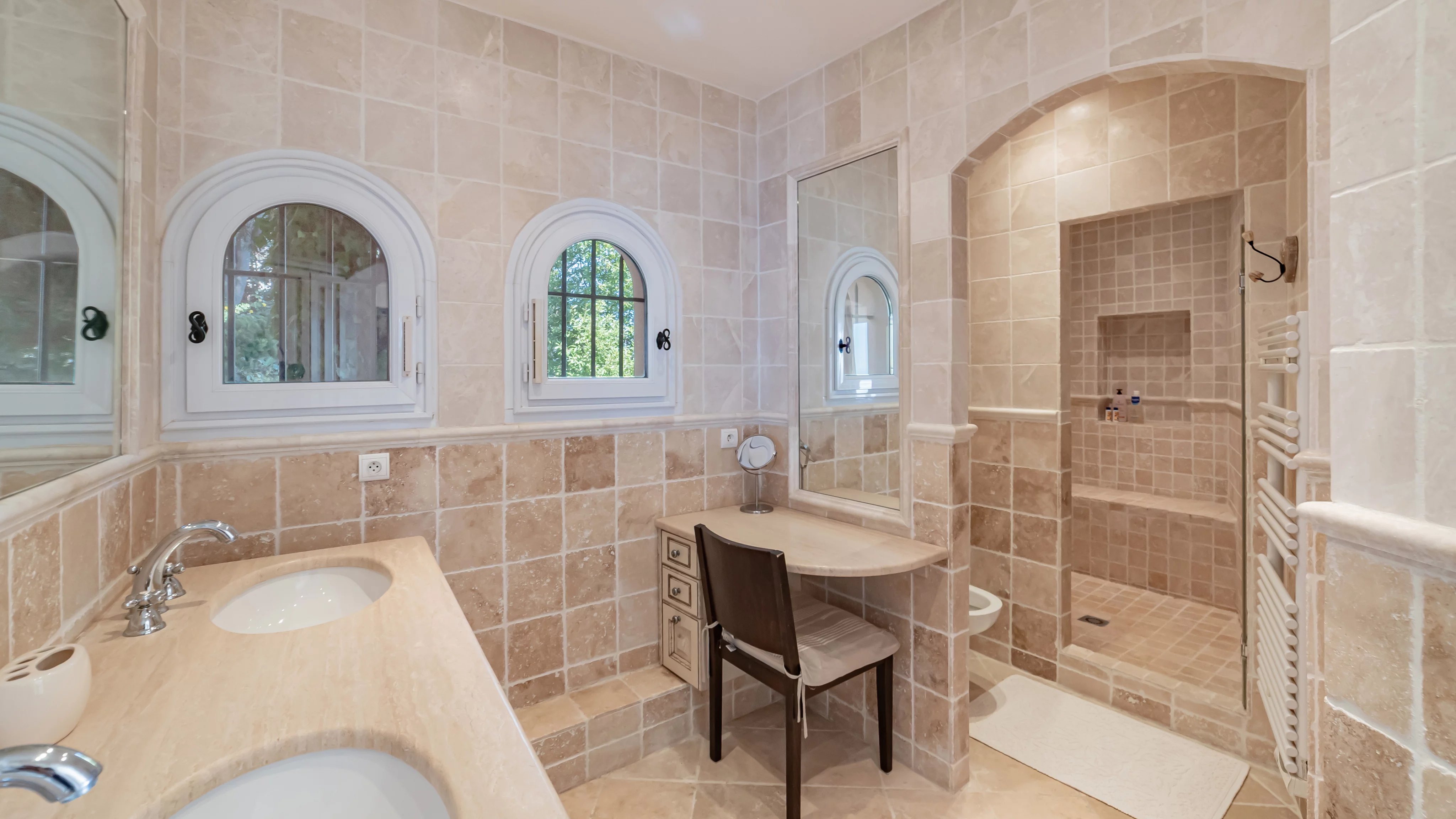 - Trois chambres en-suite, chacune bénéficiant de sa salle d'eau/WC ;