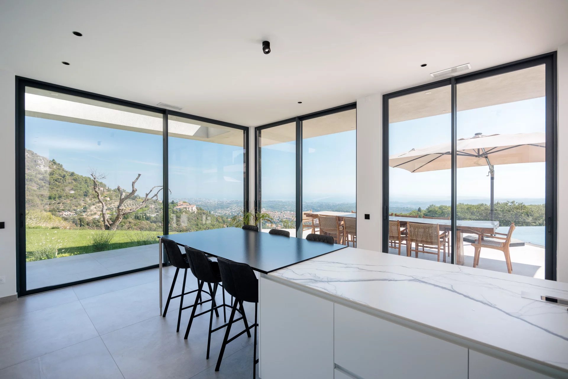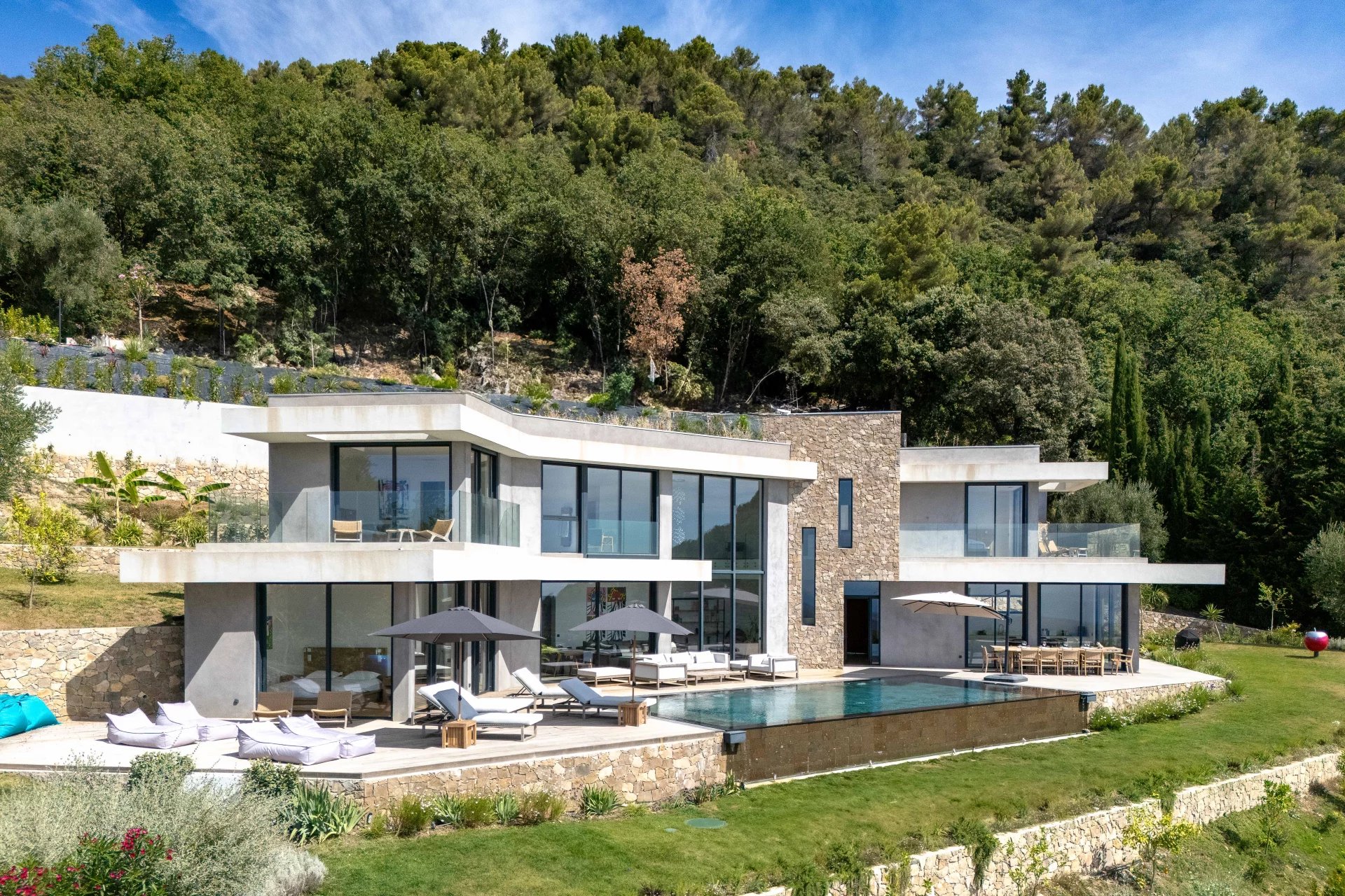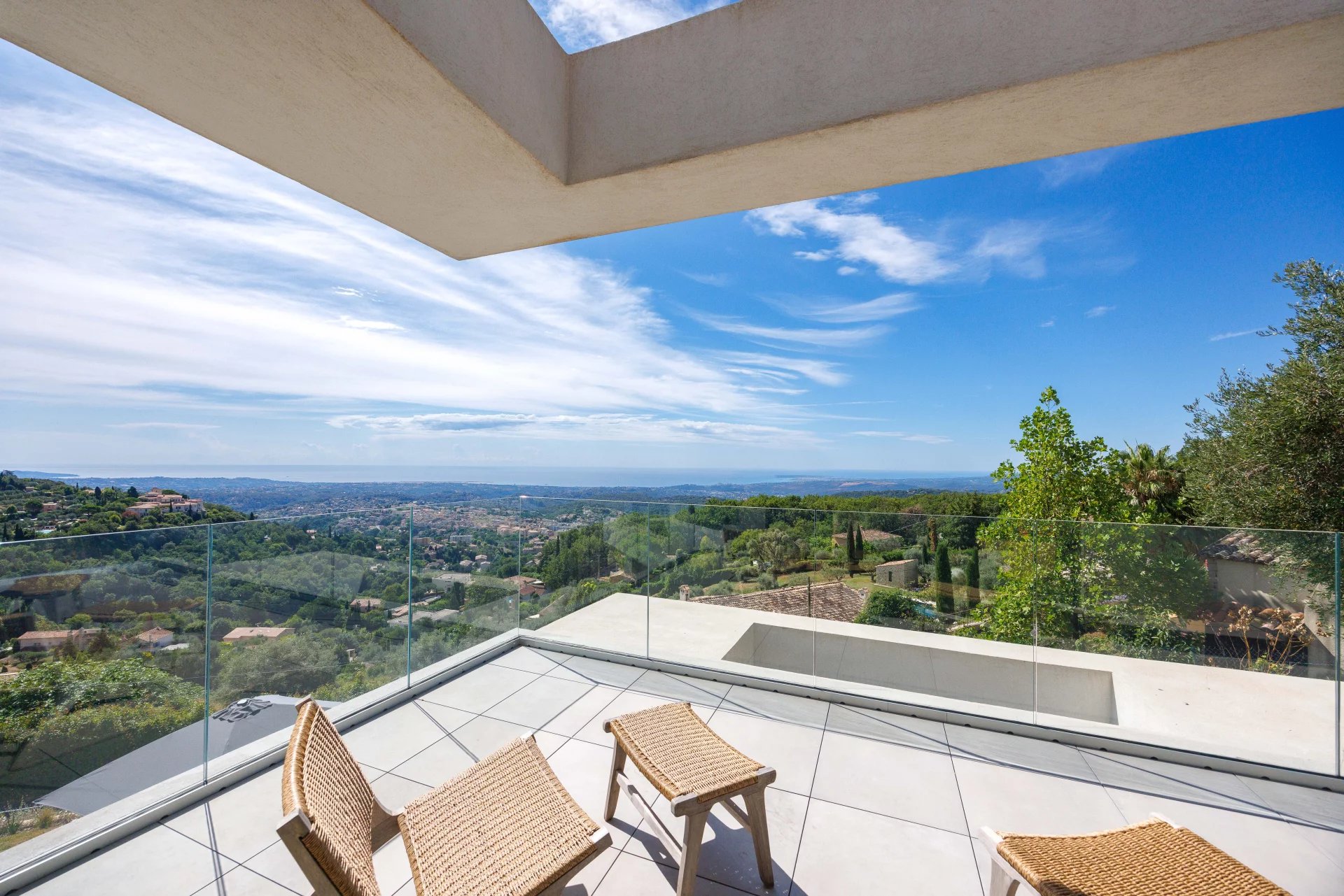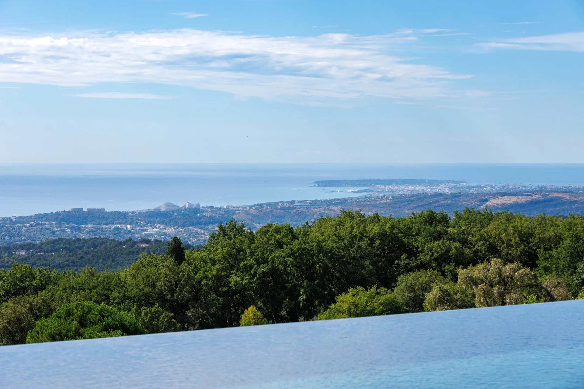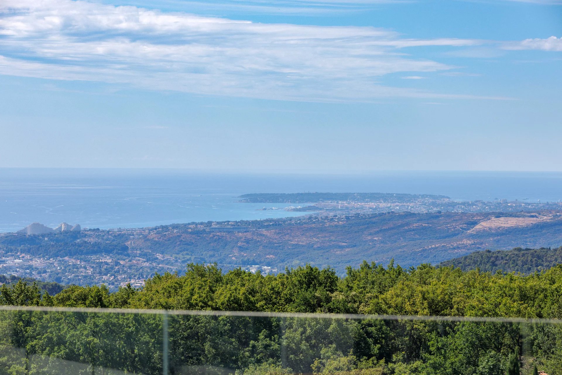 Cette superbe villa contemporaine de 355 m², récemment construite, est idéalement située sur les hauteurs de Vence, au cœur d’un terrain paysager de 4 000 m². Elle offre un cadre exceptionnel avec des vues de carte postale sur la mer — du Cap d’Antibes à la Baie des Anges et jusqu’au Cap Ferrat — ainsi que sur les montagnes environnantes.